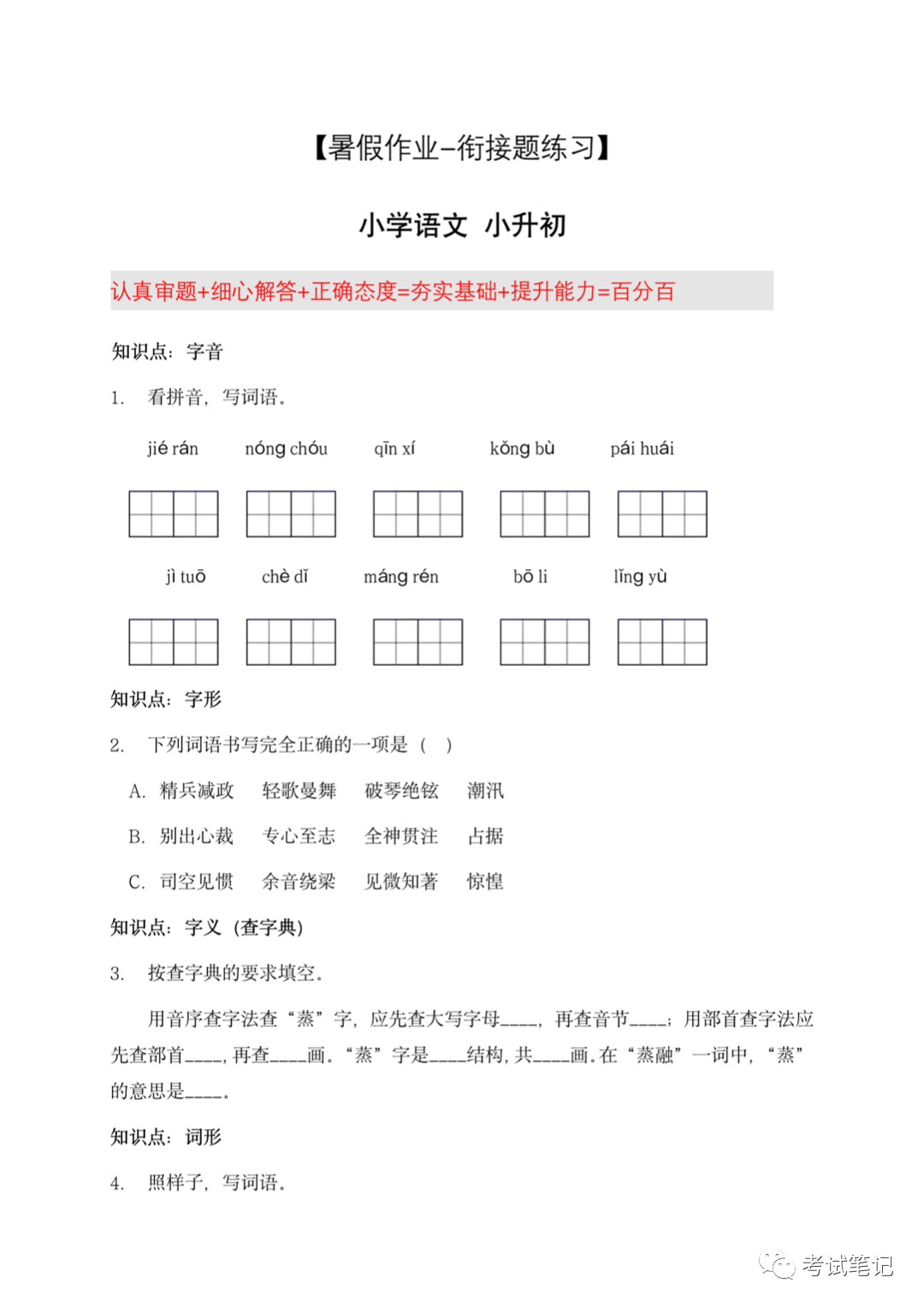 暑假衔接作业:小学升学语文练习,夯实基础+能力提升!