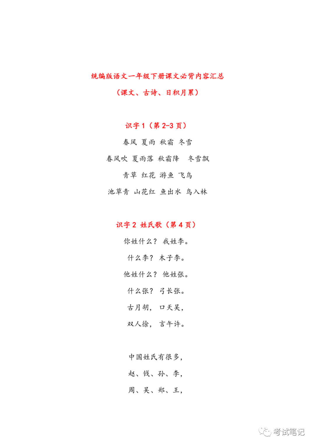 一年级语文下册:课文必背内容汇总(课文、古诗、日积月累)!