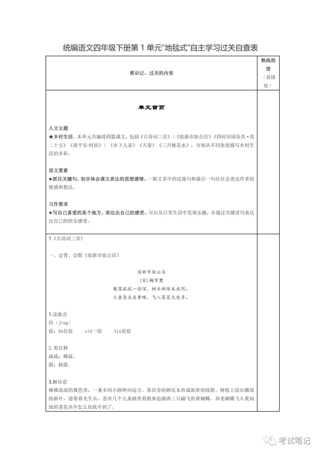四年级《过关自查表》:对照着看看,这些都会了吗?