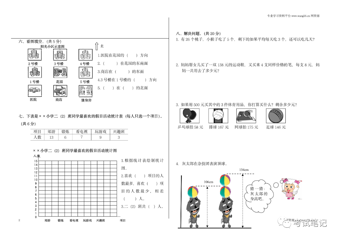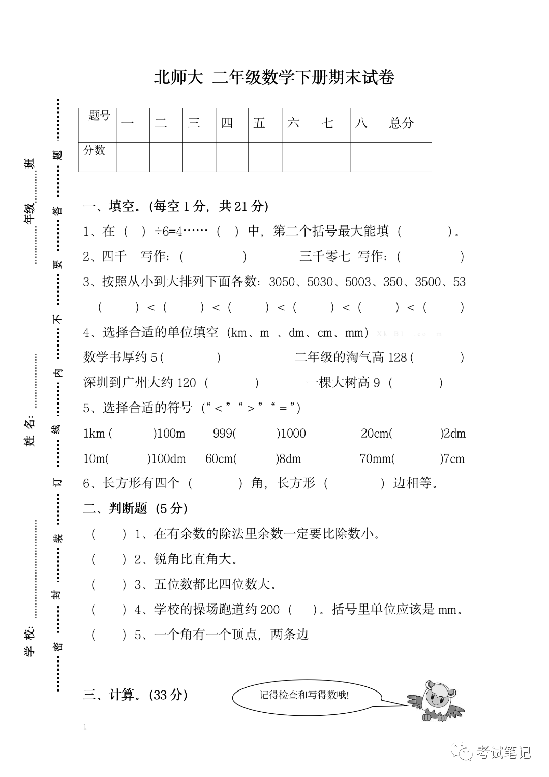二年级数学(北师大版):期末测试卷3套,为孩子收藏!