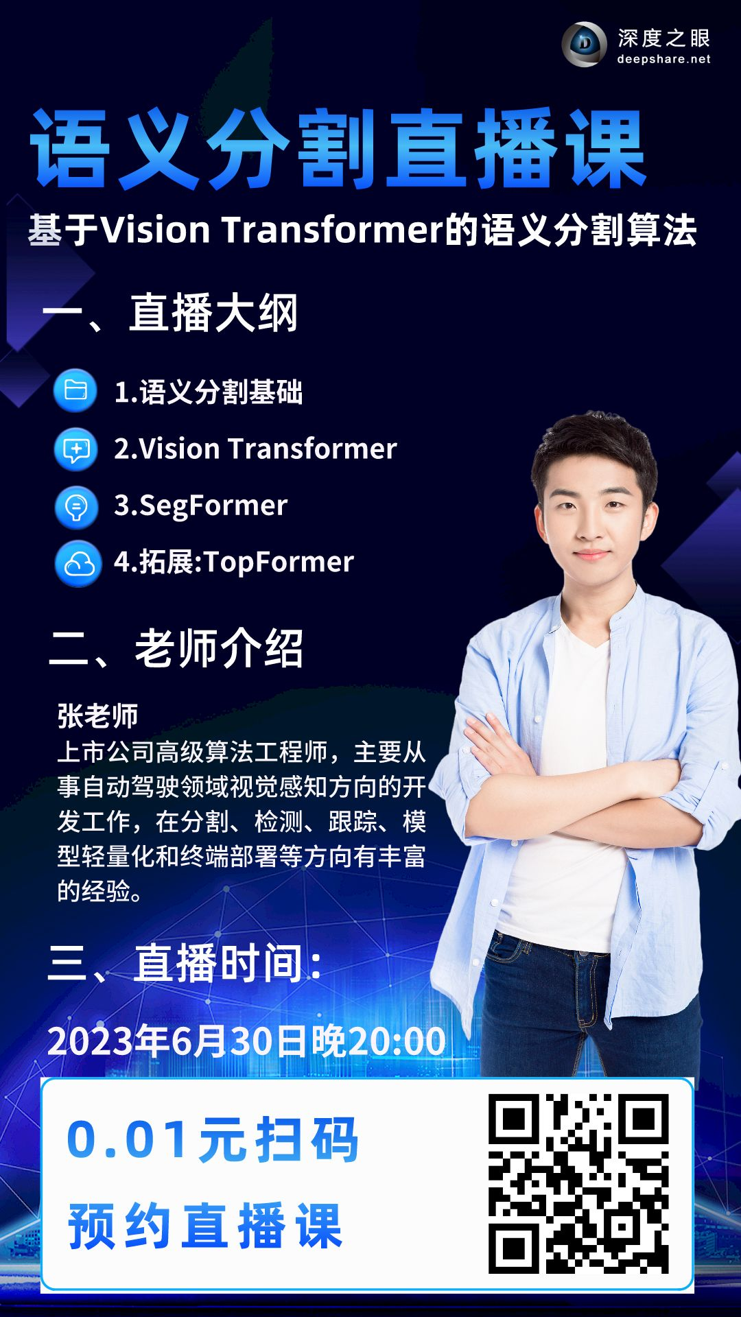 这次我邀请了上市公司高级算法工程师——张老师,用1个小时带大家一起去探索语义分割,此次直播课内容包括Vision Transformer、SegFormer、TopFormer讲解。