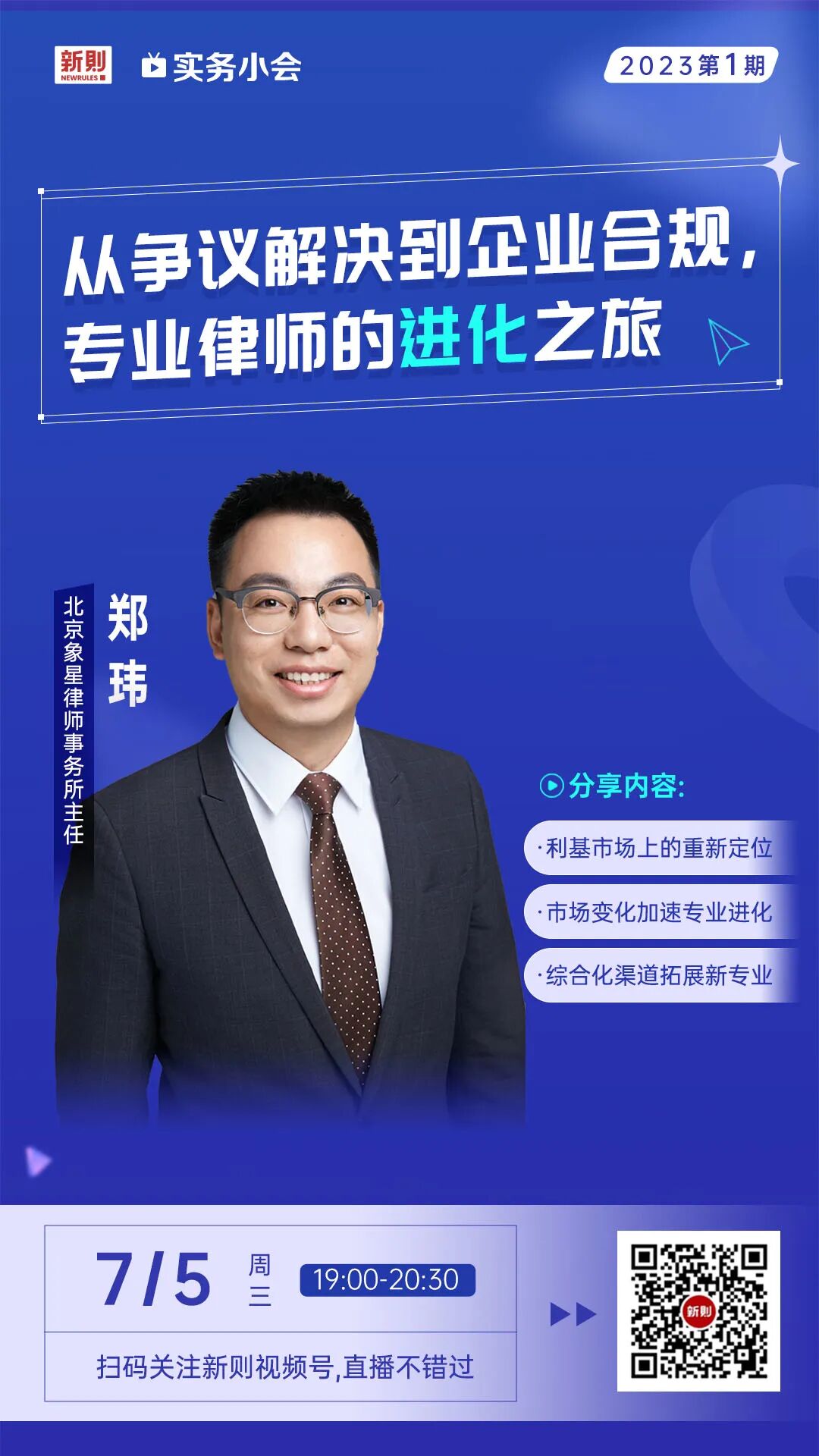 7月5日晚上7点(下周三),北京象星律师事务所主任郑玮将分享「从争议解决到企业合规,专业律师的进化之旅」。欢迎预约直播![]()