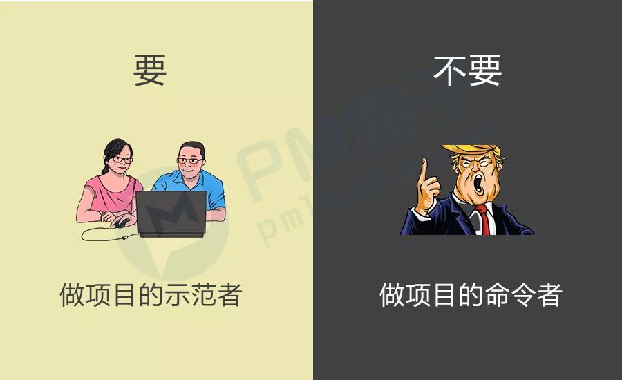 项目经理能够给大家做的示范,不是教开发怎么提高技术、教设计怎么作图,真正的以身作则,把自己的管理工作做好。