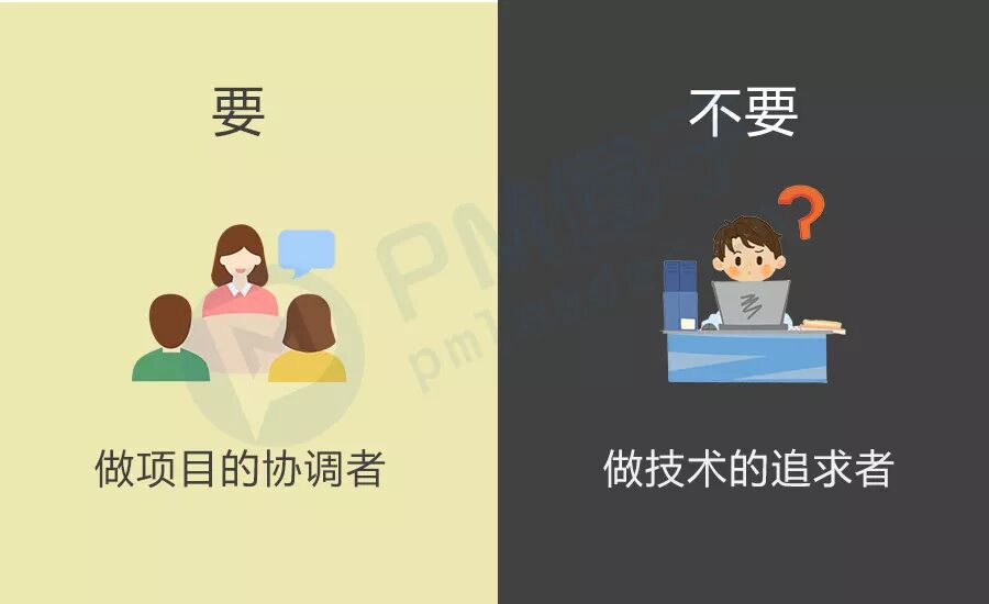 很多技术转管理的项目经理,由于自身技术能力很强,常常陷入对技术的细节的无限追求,忽略了整体的协调工作。项目经理要记住一点:项目经理是一个商业角色,而不是一个技术宅。