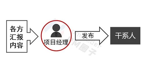 在企业中,要建立汇报机制。以项目经理为中心,所有项目相关信息汇集到给他,之后由项目经理发送给项目干系人。