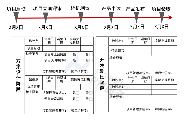 所以在一些关键节点,比如项目立项评审、样机测试、产品中试等关键节点,项目经理需要重点监控。