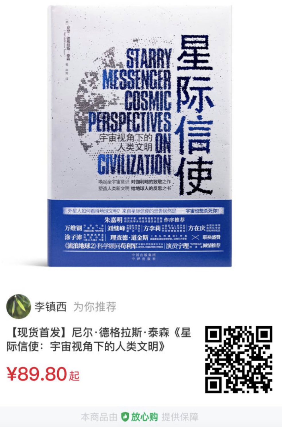 为此,诚荐这本“刷新理工思维天花板”的名作——全球著名物理学家尼尔·泰森写给全人类的《星际信使——宇宙视角下的人类文明》,本书更因案例与写法上的杰出之处被《上帝的错觉》作者理查德·道金斯评价为:“每一页都被原创的诗意想象照亮,浸透了数学与科学之美”。长按下图,识别图中的二维码,即可一键收藏(先知书店独家首发):![]()