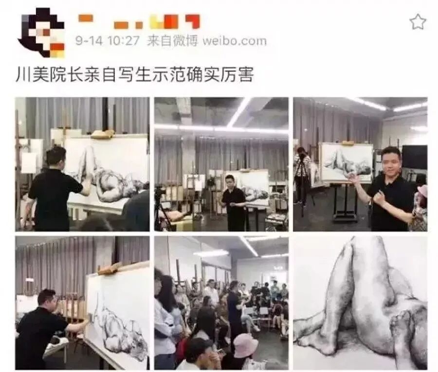 有人在网上分享了一组大学美术课堂人体写生教学照片,配文“川美院长亲自写生示范确实厉害”。
