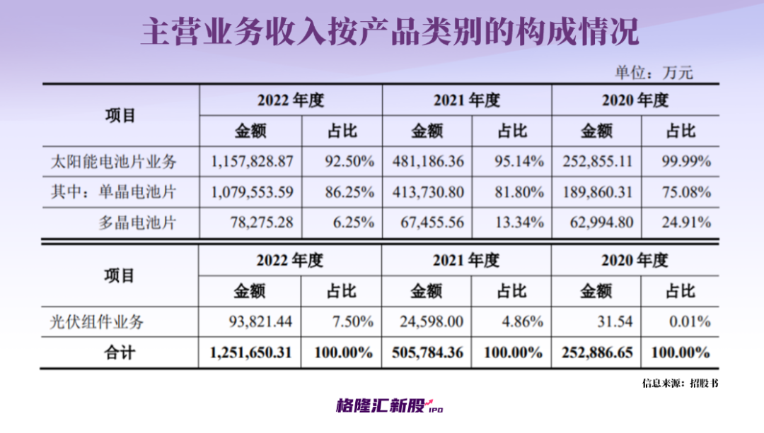 招股书显示,中润光能的主营业务为高效太阳能电池片的研发、生产和销售。据PV InfoLink统计,2022年公司电池片出货量位居全球第四(前三名分别是通威股份、爱旭股份、润阳股份)。