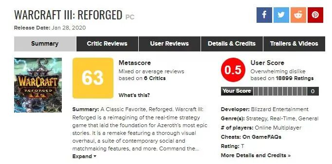 比如 2020 年魔兽三重置版上线,并在知名评分网站 Metacritic 上,一举斩获了 0.5 分的史诗级 “ 高分 ” 。更有玩家亲切地送了一个新名字《 魔兽争霸 3 :还钱 》。不往深了说,什么游戏玩法设计、承诺的内容被砍之类的。就光是这个游戏画面,充满廉价感的草地、建筑和技能效果,有些地方甚至还不如原版。。