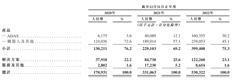 速腾聚创是一个师生共同创业的故事,三位联合创始人都来自哈尔滨工业大学。2014年8月,邱纯鑫在完成控制科学及工程专业的博士论文之后,与导师朱晓蕊和同门师弟刘乐天共同创立了速腾聚创,开发用于汽车和机器人的激光雷达技术。自成立以来,速腾聚创累计融资超过36亿元,获得东方富海、华兴资本、菜鸟、小米、北汽集团、宇通客车等众多知名投资机构和战略投资方的支持。2023年4月G轮融资完成后,公司估值超过180亿元。最大的机构赢家是东方富海,最初的200万元天使投资大赚290倍。目前,39岁的邱纯鑫任速腾聚创CEO,34岁的刘乐任CTO,邱纯鑫的弟弟邱纯潮任执行总裁,导师朱晓蕊则担任科学顾问。出生于1977年的朱晓蕊不仅是学术大牛,还投身创业和投资孵化,将科研成果产业化。她本科和硕士研究生都就读于哈尔滨工业大学,后来在美国犹他大学取得机械工程博士学位。学成归来后,朱晓蕊进入哈尔滨工业大学深圳研究院任教,2011年被破格评为博士生导师。后来,朱晓蕊成为珠海市岭南大数据研究院院长。朱晓蕊不仅是速腾聚创的联合创始人,还参与了多家创业公司的创办和投资孵化。她曾受李泽湘之邀加入大疆,任首席科学家,亲历了大疆从一个濒临倒闭的团队到全球无人机霸主的全过程。朱晓蕊也是机器人公司大道智创的联合创始人和投资人,这家公司由哈工大博士邢志伟创办。朱晓蕊参与孵化的自主驾驶导航技术研发商一清创新已经完成3轮融资,朱晓蕊也是的股东之一,持股比例达9.48%。成立不久,速腾聚创就获得东方富海的200万元天使轮投资。速腾聚创最新一轮融资,发生在2023年4月。招股书显示,通过G-1系列和G-2系列两轮融资,速腾聚创一共募集11.9亿元。这轮融资后,公司估值超过180亿元。此时东方富海的200万元投资价值5.8亿元,大赚290倍。IPO前,三位联合创始人邱纯鑫、朱晓蕊和刘乐天持股比例分别为11.58%、6.94%和4.25%。三个雇员持股计划控股实体Robust、Ruby及Hoping Dream合计持股8.34%。此外,华兴资本持股为5.32%,东方富海持股为3.59%,广东民营投资股份有限公司持股为3.47%,湖北小米长江产业投资基金持股为2.35%,吉利持股为1.72%。激光雷达通过融合视觉或其他传感器的感知解决方案,可以赋予汽车和机器人超越人类眼睛的感知能力。根据灼识咨询的资料,速腾聚创是全球最早实现车规级固态激光雷达量产的激光雷达公司。以芯片驱动的激光雷达硬件为基础,同时布局人工智能感知软件技术,速腾聚创形成了结合硬件和人工智能感知软件的激光雷达解决方案。根据招股书,与全球其他激光雷达公司相比,速腾聚创具备几大领先优势:一是服务的汽车整车厂和一级供货商数量最多。2022年,速腾聚创拥有953名客户,主要客户包括吉利汽车、广汽埃安、长城汽车、小鹏汽车、路特斯、Lucid等。2020年、2021年和2022年,速腾聚创来自最大客户的收入分别占总收入的17.3%、11.8%及10.2%;来自前五大客户的收入分别占总收入的29.1%、33.3% 及 33.2%。三是开启量产交付车型 SOP(标准作业程序)最多。截至2023年3月31日,速腾聚创已为21家整车厂和7家一级供货商实现了9 款车型的SOP。2020年、2021年和2022年,速腾聚创营业收入分别为1.7亿元、3.3亿元和5.3亿元,分别同比增长93.7%、60.2%。速腾聚创的收入来自产品、解决方案、服务及其他三部分。其中,向汽车、机器人及其他行业客户销售各类激光雷达硬件产品,是主要收入来源。上述三年中,来自产品销售的收入分别达到 1.3亿元、2.2亿元、4亿元,占总收入的76.2%、69.2%及75.3%。三年中销售的激光雷达产品数量,分别达到 7200 台、16,300 台和57,000 台。M1是速腾聚创激光雷达产品的爆款,也是全球首个实现量产的车规级固态激光雷达。车规级智能化固态激光雷达RS-LiDAR-M1 Smart2017 年,速腾聚创推出了基于MEMS技术方案的车规级半固态激光雷达M1,2021年,M1 正式对外发售。以2022年为例,速腾聚创卖出的57,000台激光雷达中,有36,600台是 M1,占比超过64%。2020年、2021年和2022 年,来自解决方案的收入占总营收的比例分别为22.2%、25.6%和23.1%。根据灼识咨询资料,速腾聚创是行业第一个提供高性能感知解决方案的激光雷达公司。2022年,速腾聚创录得毛亏损0.4亿元,毛损率为7.4%。2020年及2021年的毛利率则相对稳定,分别为44.1%及42.4%。这主要是由于激光雷达领域持续升级的价格战,导致产品价格下降。三年间,速腾聚创来自激光雷达的产品销量增长了6.9倍(从7200台增至57,000台),与此同时,产品收入却仅增长了2.1倍(从1.3 亿元增至4亿元)。2020年、2021年和2022年,研发费用分别为人民币0.81亿元、1.33亿元和3.05亿元,占总收入的47.7%、40.2%及57.7%。2022年底,速腾聚创研发团队拥有482名员工,占总员工总数的36.8%,研发员工中超过一半以上拥有硕士或博士学位。2020年、2021年和2022年,速腾聚创的销售和营销支出分别为2360万元、4690万元和6740万元,占总收入的比例分别为13.8%、14.2%和12.7%。速腾聚创还未实现盈利,2020年、2021年和2022年经营亏损分别为0.6亿元、1.7亿元和6.2亿元。三年累计经营亏损8.5亿元。依靠强大的融资能力,目前速腾聚创资金充裕,2022年末持有现金及现金等价物21亿元。招股书披露,二级市场募资成功后,速腾聚创还将进一步在核心技术,包括自研芯片、技术平台和人工智能感知软件是上进行投入,以支持产品和解决方案的开发。此次IPO的预期募资额仍是未知数。2