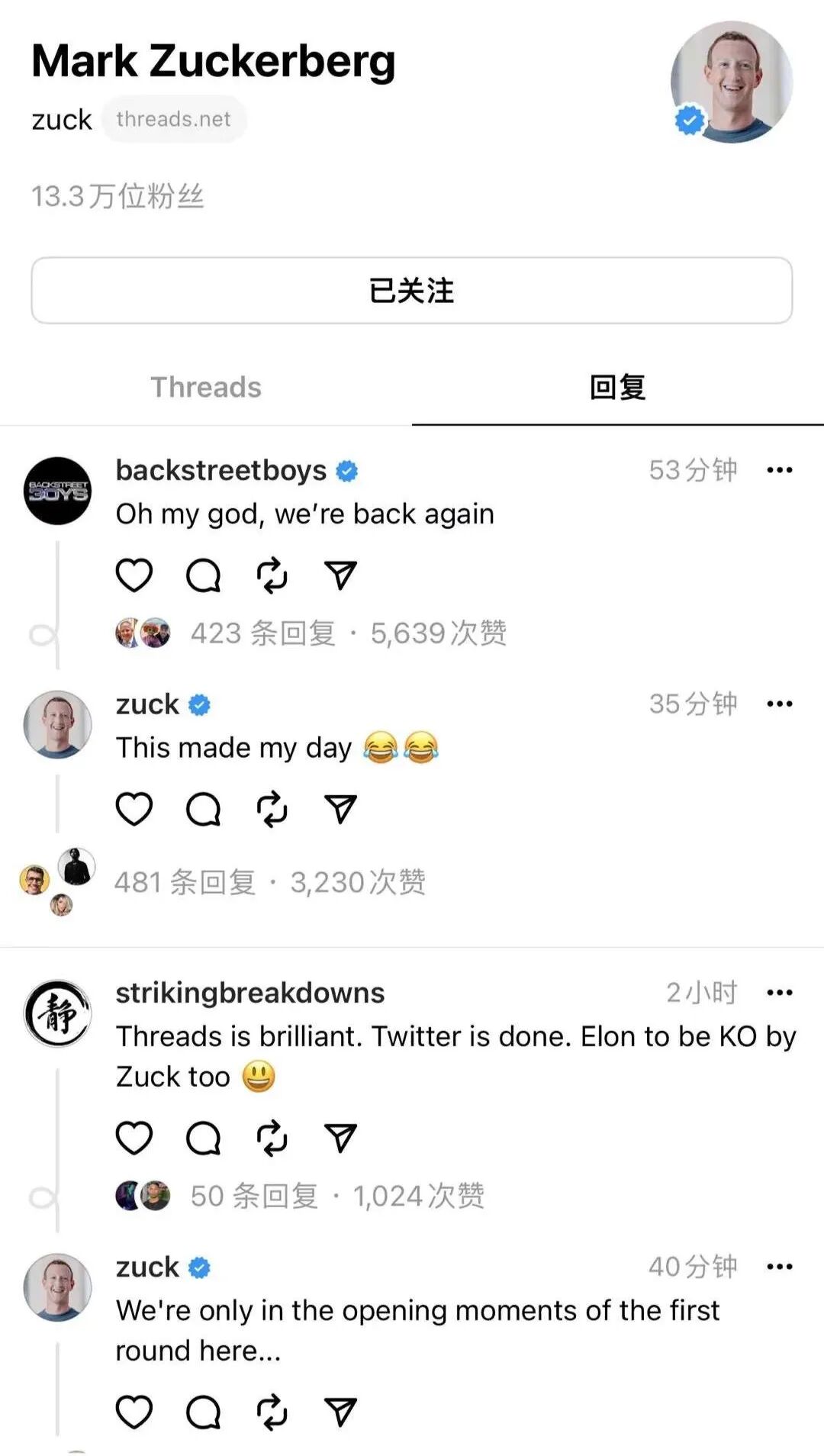 万众瞩目的真人决斗还没拉开帷幕,但在线上,两人正式开战。就在前几天马斯克宣布要限制Twitter用户的浏览量、引得全网骂声一片之际,小扎这边瞄准时机,立刻“重拳出击”宣布上架了一款Twitter的替代品——Threads。大约在一个多月以前,就有风声传出Meta正在筹备一款内部代号为P92或Barcelona的全新独立社交软件,模式定位于“Instagram的文字版本补充”。后来随着越来越多的消息流出,很多人发现,Meta这哪是在丰富Instagram,完全是在造一个新Twitter!小扎更是在Threads放话:KO 老马的Twitter,我们这才是刚刚热身而已……美西时间昨天下午4点,这款新Twitter替代品正式上架了苹果和谷歌商店,我们也第一时间进行了注册试用。那么,这款新社交App到底长啥样、能不能真正成为“Twitter杀手”,又有隐藏着Meta什么样的野心呢?Threads本来原定于今日早间发布。但昨天早间,Threads的网页界面突然开放了几个小时供大家预览。当时仅有扎克伯格、Netflix、Instagram一些内部邀请“玩家”拥有账号和使用权限,Netflix官方甚至还发了一张百无聊赖等大家来玩的图。![]()