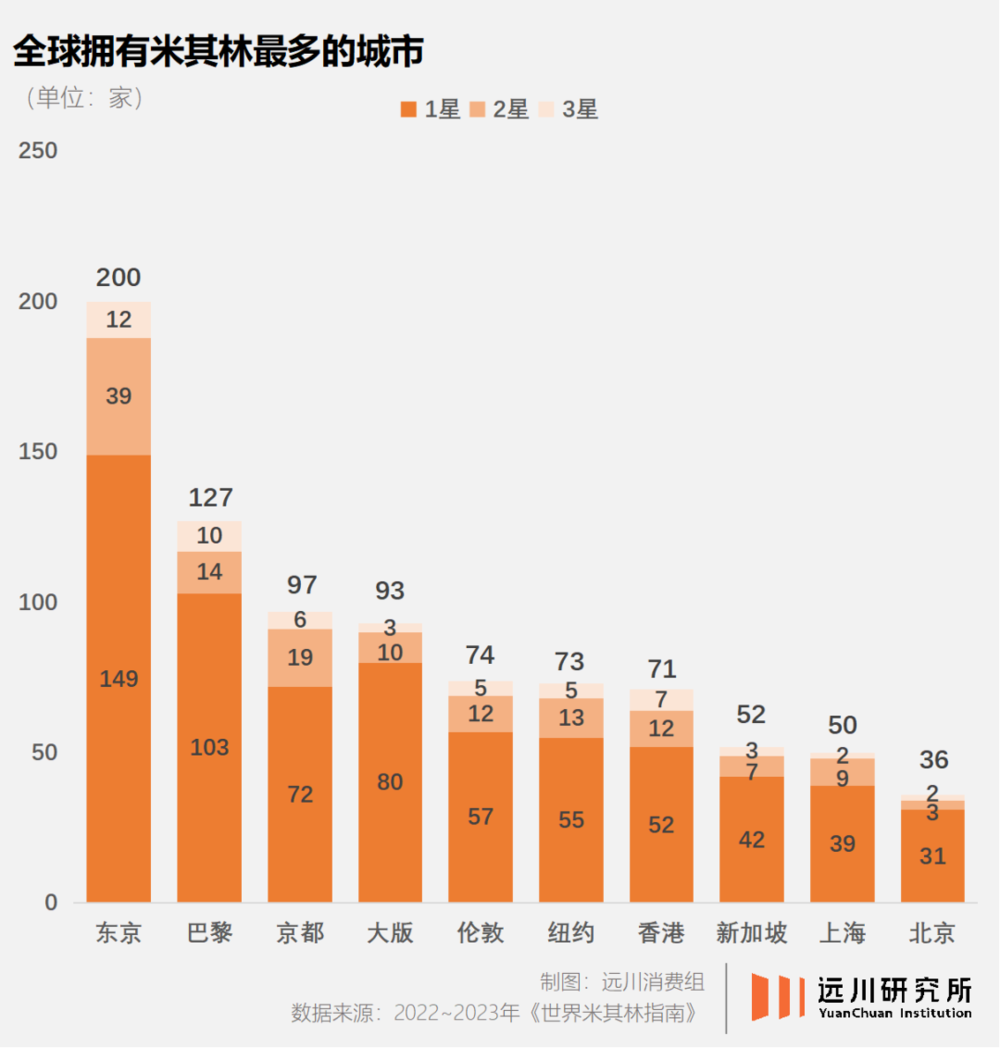 另一边,《经济学人》曾经在2021年将东京评为“这个世界上最大也是最宜居的城市之一”[10],原因之一就在于东京比其他任何地方都要多的餐厅,200家米其林餐饮数量远超巴黎。