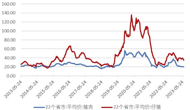 农业部数据显示,2023年1月至5月,我国能繁母猪存栏连续环比下降5个月,累计去化2.5%。资本市场表现上,2023年初至6月末,猪肉概念板块累计下跌4.83%。