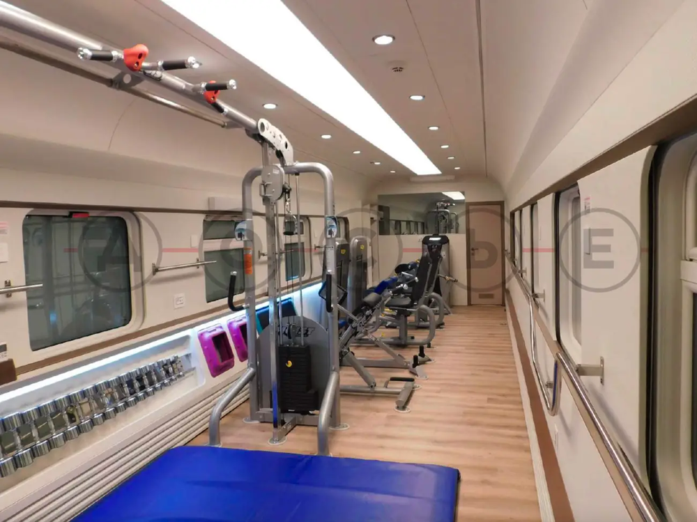 还有车厢被改造成健身房,里面配备了推举凳、超伸展机和重达8公斤的哑铃。报道补充说,普京的安全团队“总统安全局”(SBP)还特别要求健身房配备“训练大腿肌肉”的健身器材。
