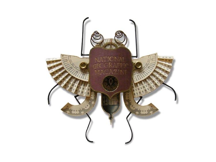 他用生活里随处可见的废品——比如旧发卡和扑克牌——组装成了许多精致的昆虫雕像,并取名为《Litter Bugs》。