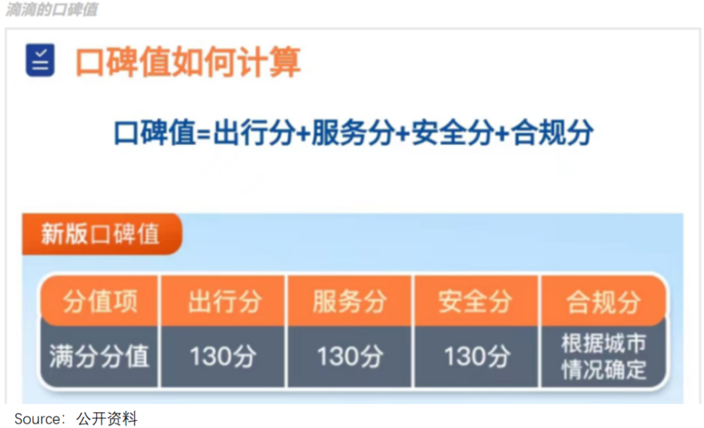 而其所说的“分”,就是滴滴平台对司机打分的“口碑值”,主要包括出行分、 服务分、安全加分、合规加分四部分。