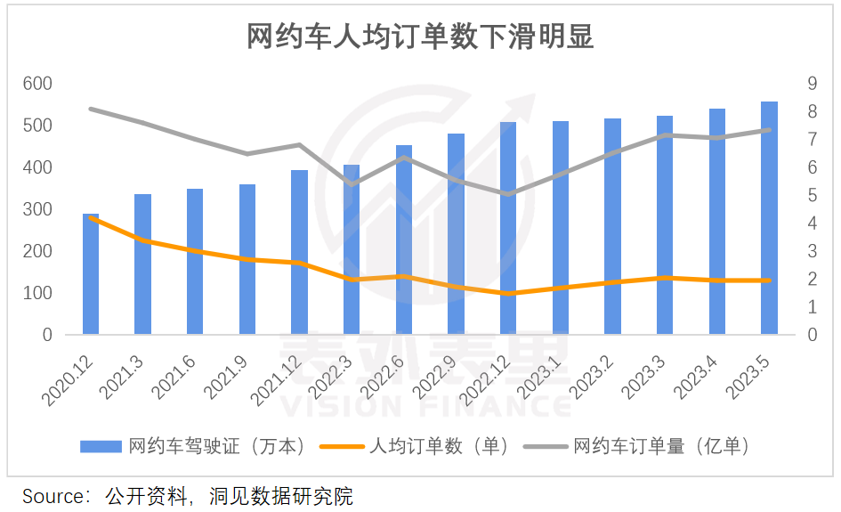 一个人拆成几个人用,司机也是迫于无奈:在供大于求的背景下,司机人均单量下滑明显,今年前5月,每个司机平均单量是606单,低于去年同期的637单。