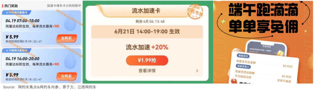 而相比免佣卡针对低价常规场景,雨天膨胀卡和流水加速卡更聚焦高峰场景。