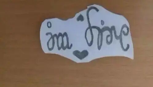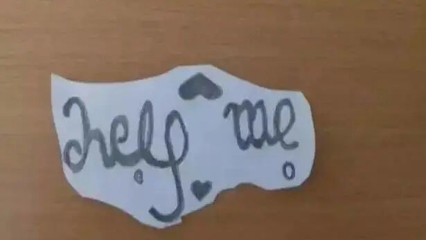 梅茜的姐姐整理妹妹遗物时,发现了妹妹写下的两个英文单词。乍一看,梅茜是在说 “I'm fine”,但把纸条反转过来时,却是“help me”。