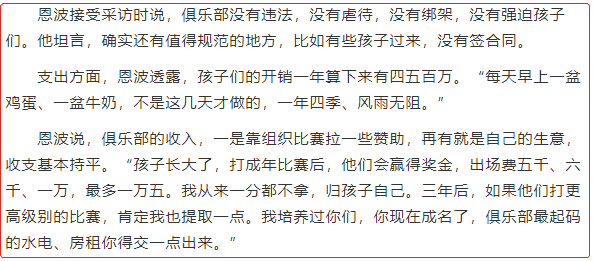 王宝强导演的电影《八角笼中》正热映,引发巨大的反响,但极少有人知道,这部电影的原型经历了一场比电影更残酷的网暴……“恩波格斗孤儿”曾轰动全国,引发全网大讨论,但随着真相进一步水落石出,却令无数人泪目……2017年7月,盛夏之际,无数人正吃瓜,突然,网上曝出了一段讲述“格斗孤儿”的视频,两名只有14岁,且赤裸着上身、手上戴着拳套的未成年男孩,正在彼此博弈、对抗、拳打脚踢……他们被关在名为“八角笼”的铁笼里,毫不留情相互攻击对方,直到对方趴下,场面相当激烈、十分震撼而残酷。而铁笼之外,许多成年人正拿着手机围观拍照,时不时起哄……很快,这则视频引发全网讨论,无数网友对这种小孩被关在铁笼中打拳的事情义愤填膺,为显示他们的正义感和同情心,纷纷进行举报。由于此事关注度太高,相关部门顺藤摸瓜,终于摸到了一个隐藏已久的真相。原来,这则视频来自四川成都一家名为“恩波格斗俱乐部”的地方,这个俱乐部专门练习综合格斗术、散打、摔跤等项目。而视频中的两个小男孩,正是恩波格斗俱乐部的成员,每天都会练习综合格斗术。随即有记者跑去采访他们,不问不知道,一问吓一跳,“格斗孤儿”的背后,竟然藏着令人震撼的秘密。他们都来自偏远的四川大凉山,小龙的爸爸死了,妈妈走了,小吾经历和他差不多,都是无依无靠的“孤儿”,得到了恩波格斗的“收养”。小吾对记者说:“(格斗比赛的)笼子里一进去,就害怕得很。”但他同时又表示,虽然这里生活很累,很辛苦,但这边有牛肉、鸡蛋,在老家只有洋芋,还会干苦活。记者发现,这里竟然“收养”了400多个像小龙小吾这样无依无靠,流离失所的孩子,日日接受艰苦的格斗训练,而他们的愿望,只有一个,就是为了改变命运。然而,这些正面的内容却被按下不表,媒体却将小吾抱怨“生活很累,很辛苦”的话放出,果然再一次引发轩然大波。人们铺天盖地攻击恩波格斗俱乐部,以及背后的老板,称他们“非法收养小孩”“利用孤儿谋利”“人身控制”等等。那之后,小吾再接受采访就非常后悔,称“我就说错那一句话,他们就给放出来,我后面说干爹对我们很好,他们都剪了,有些人把干爹说得很坏似的,我好讨厌他们。”即便孩子这么说,这家被指控“利用孤儿谋利”的背后大佬,还是被网友扒了出来,但真相却更令人戳心。正是王宝强在电影《八角笼中》里扮演的角色原型,他创办这家格斗俱乐部,完全是公益性全免费的。也就是说,这些来自大凉山或周边地区来投奔他的贫困孩子们,都是全免费,不收钱,还包吃住,但要学习打拳,以及晚上上文化课。如此好事,慢慢地,吸引了更多贫困孩子的到来,而恩波格斗这里,俨然成了无路可走的贫苦孤儿“收容所”。恩波也出生于四川阿坝州黑水县,8岁丧父,经历过极其贫困的生活,为了改写命运,他18岁时开始练习散打,凭借过硬的本领,之后成了一名武警战士。1990年,在武警阿坝州支队举行的军事大比武中,恩波一举拿下了“单双杠、擒拿格斗”双冠军。后来,他还下基层做过军事指导,也是在这里,恩波总看到一些孩子在山上和街边游荡,当时他心里很疑惑,现在正是上学的时候,这些孩子不上学干嘛呢?抱着这样的疑问,他跑去询问打听,结果发现一个非常残酷的事实,这些孩子并不是不想上学,而是家里实在太穷了,几乎没有家人照顾,很多都是孤儿。他又想起当特警的时候,同样见过不少类似的例子,很多几岁,甚至十几岁的孩子,因为没人管,最终走上了偷窃、打架,甚至犯法的道路。恩波觉得自己应该做点什么,于是萌生了想要帮助这些孩子的想法。2001年,他正式退伍了,开始从事建筑工程工作,在积攒了一些资金后,并投资组建了一支武术散打队,招收孤儿来培训。恩波向《局面》介绍,这支散打队是和当地政府一起合办的,散打算是体制内的项目,会打一些青少年省市级甚至全国性的比赛。因为散打队越来越有名气,又是出了名的免学费,包吃住,还上文化课,所以陆陆续续有人联系他,希望将孩子送过去。起初,恩波不太同意,因为打比赛涉及到户口问题,但依旧有人坚持将孩子送过来,最终只好同意了。他定下入门的要求,首先孩子要是困难家庭的孩子,喜欢武术的,想改变一下命运的。其次,身体条件要符合,没有传染病,自己自愿和家长或监护人同意,以及当地政府同意,就来。恩波也像对自己的孩子一样,教他们格斗,照顾他们生活,教他们做人。因此,在恩波格斗俱乐部,很多孩子将恩波当作父亲,喊他“干爹”。而恩波除了带他们日常训练,还会时不时带他们出去吃从未见过的汉堡,游泳……那时,电影《摔跤吧!爸爸》上映时,恩波还将所有孩子都带到电影院观看。电影中,阿米尔汗为了改变两个女儿的命运,让她们练习摔跤,以求能自主掌控人生,所以总会强迫要求孩子们跑步、锻炼、打沙包等。![]()