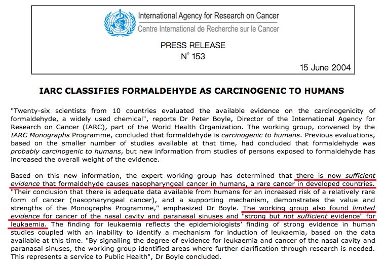 甲醛早就被IARC(国际癌症研究机构)列为 I 类致癌物。
