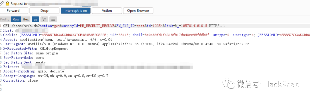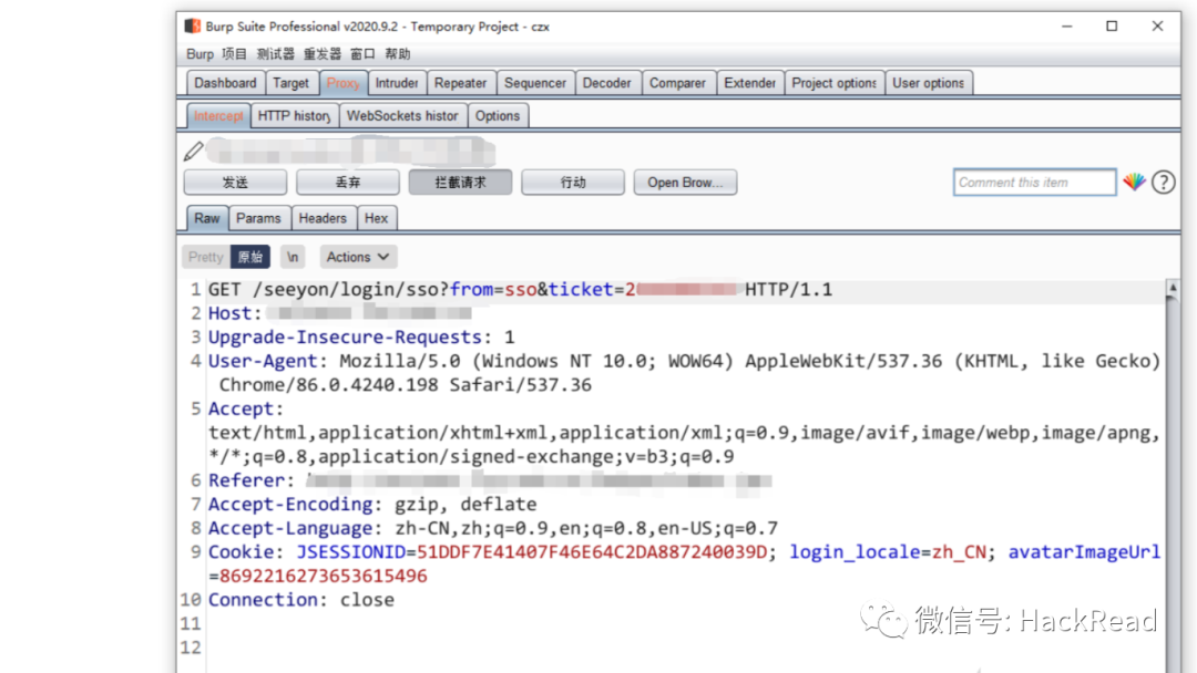 统一认证界面点击OA系统的链接,burp拦截报文