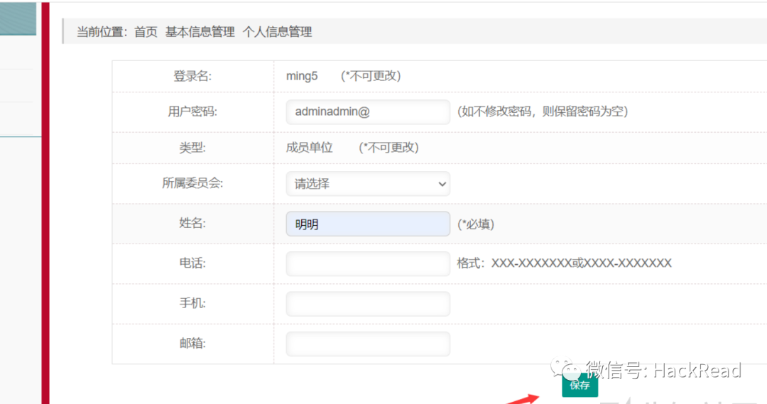 登录ming5账户,修改信息点击保存