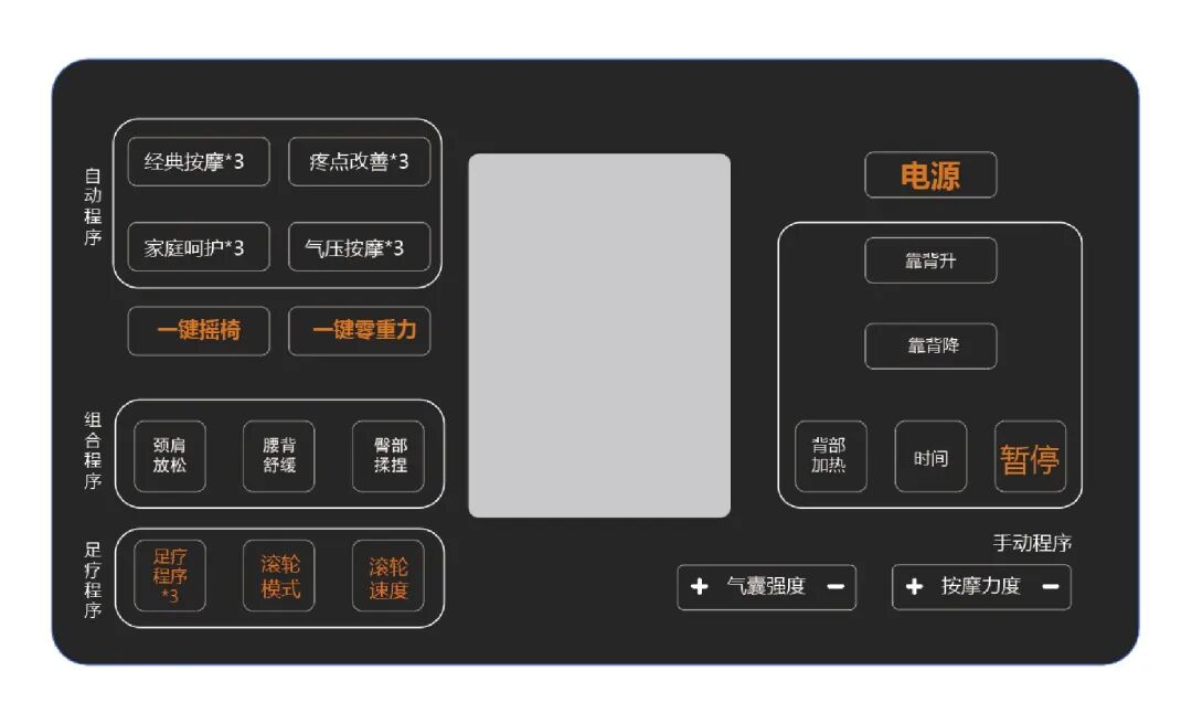 不光字号大,而且中间的屏幕还会实时显示目前的按摩点,调节起来方便直观,对于老人以及我这种机器白痴来说很友好。