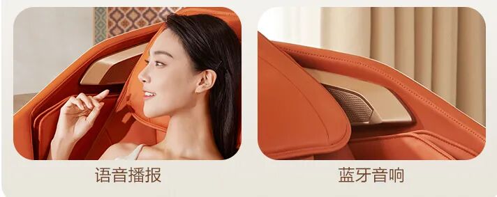 而且按摩椅上方两侧还各有一个蓝牙音箱,连接好手机后就能播歌。