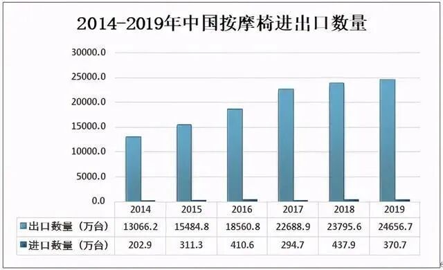 而且我们还是按摩椅出口大国!据中国海关数据显示,近几年我国按摩椅的出口数量一直远高于进口数量
