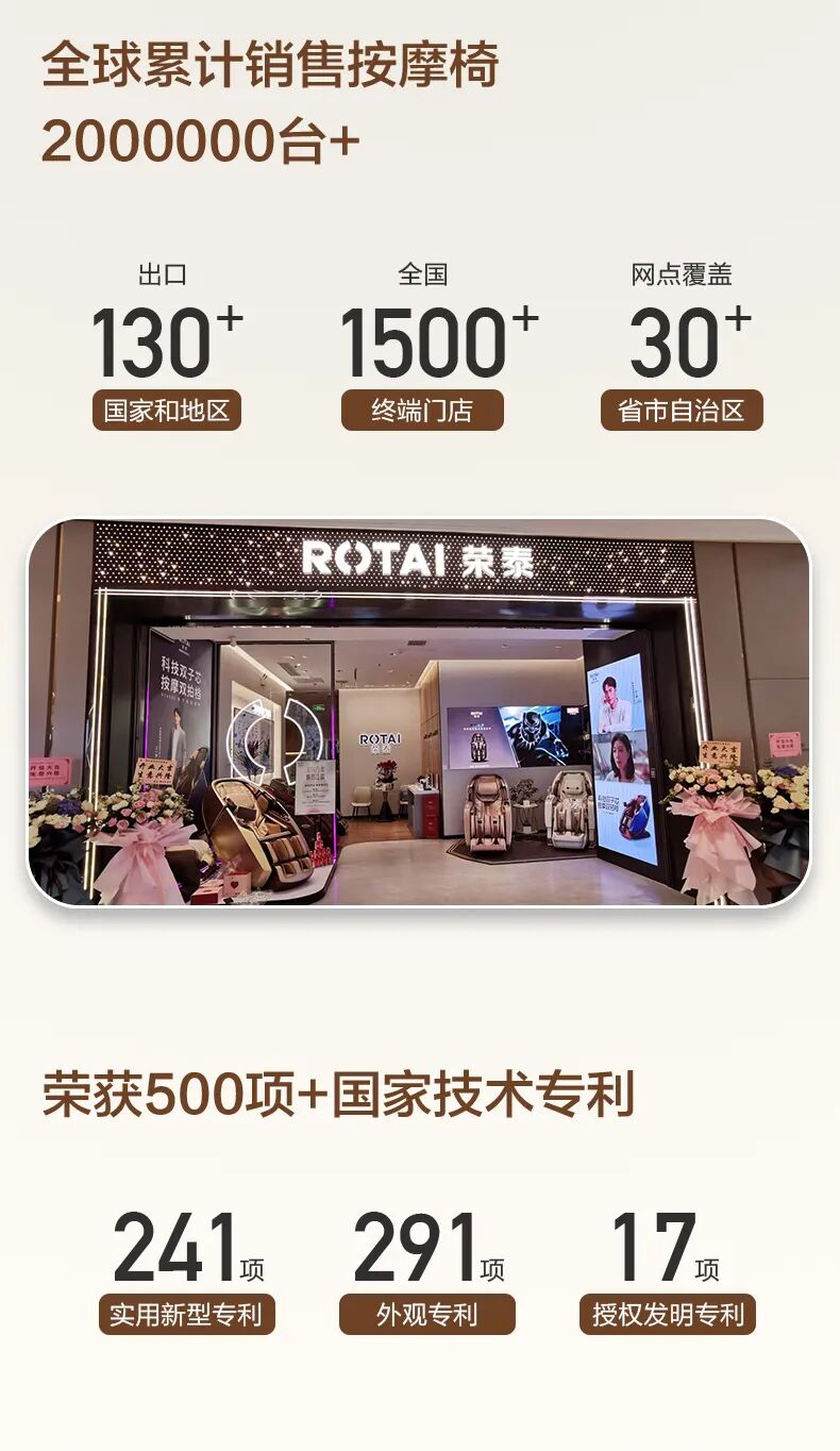 成立以来,荣获500多项国家技术专利,全球累计销量20万+台按摩椅!