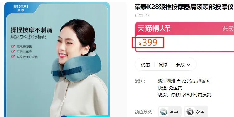 现在购买还赠送一个价值399元的荣泰K28颈部按摩枕(颜色随机),简直太划算了