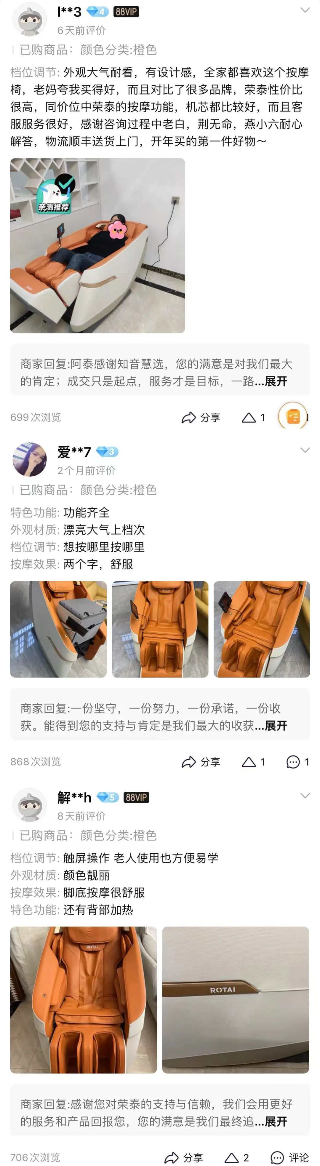 产品质量好、有保障、性价比高,这也是荣泰能处于行业领军地位25年,品质和口碑双丰收的主要原因。