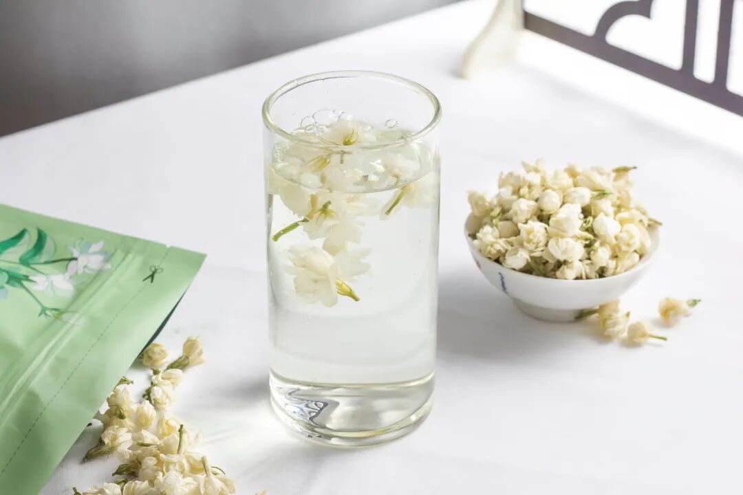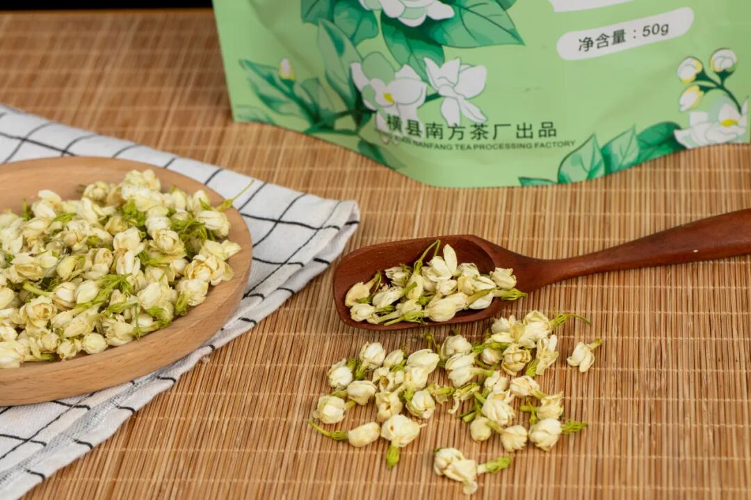 6斤茉莉花鲜花,只能制作1斤茉莉花干。闻起来芳香四溢,喝起来清爽适口,甘甜入心。