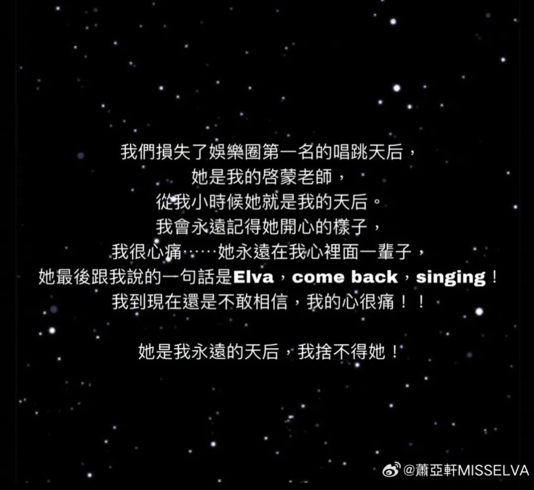家庭方面,十多年前,萧亚轩的母亲因癌症去世。单亲家庭长大的她失去了唯一近亲。