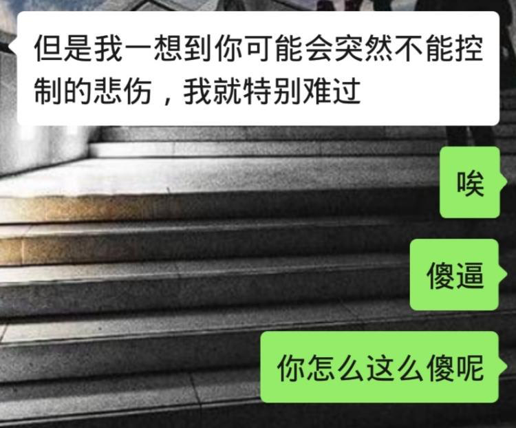 有一天,她正在劝朋友不必担心,对面显示“正在输入中”,显示了好久,发来一句,“你一定不要强颜欢笑。我一想到你会突然不受控制的悲伤,我就好难过。”