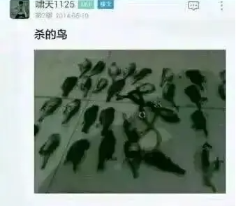 他杀的鸟儿,尸体被他密密麻麻摆在地上拍照。