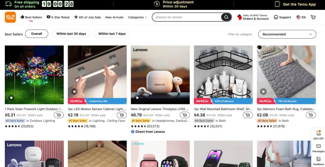 Temu最畅销的产品(图源 Temu截图)