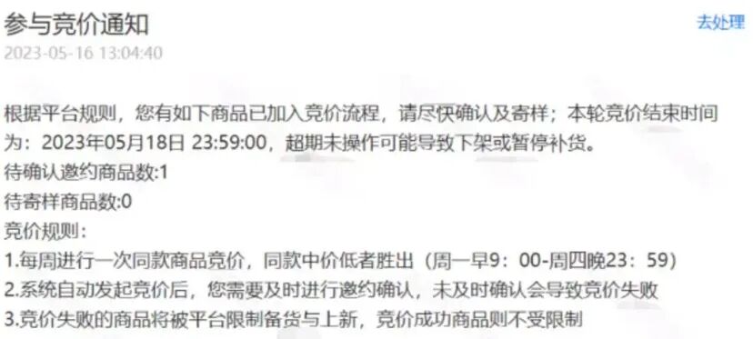Temu发布的同款竞价通知