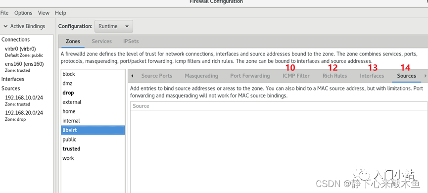 > firewall-cmd --zone=drop --add-source=192.168.20.0/24将此子网与 drop 区域绑定(拒绝从此子网发来的流量)