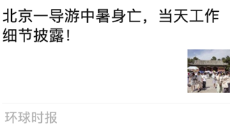 2日下午,北京一个导游,在工作期间,因高温诱发热射病去世。