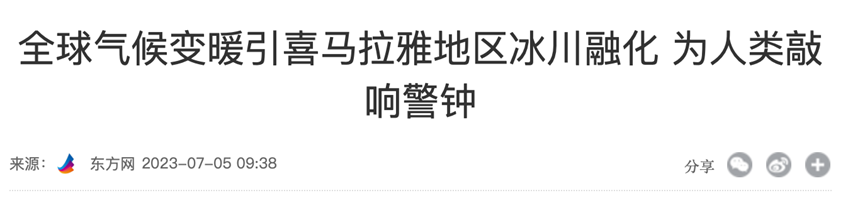 由于全球变暖,导致兴都库什-喜马拉雅地区的冰川已经融化。