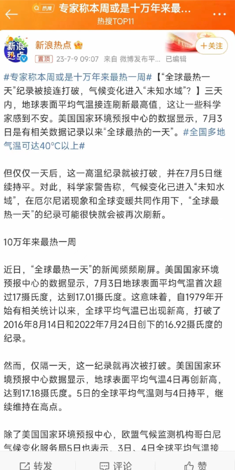 玩笑归玩笑,如今的极端高温,其实释放出的是一个极其危险的信号。