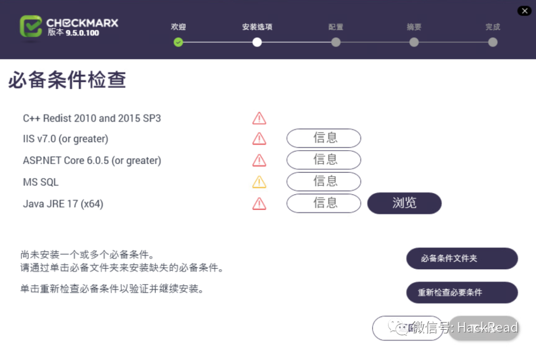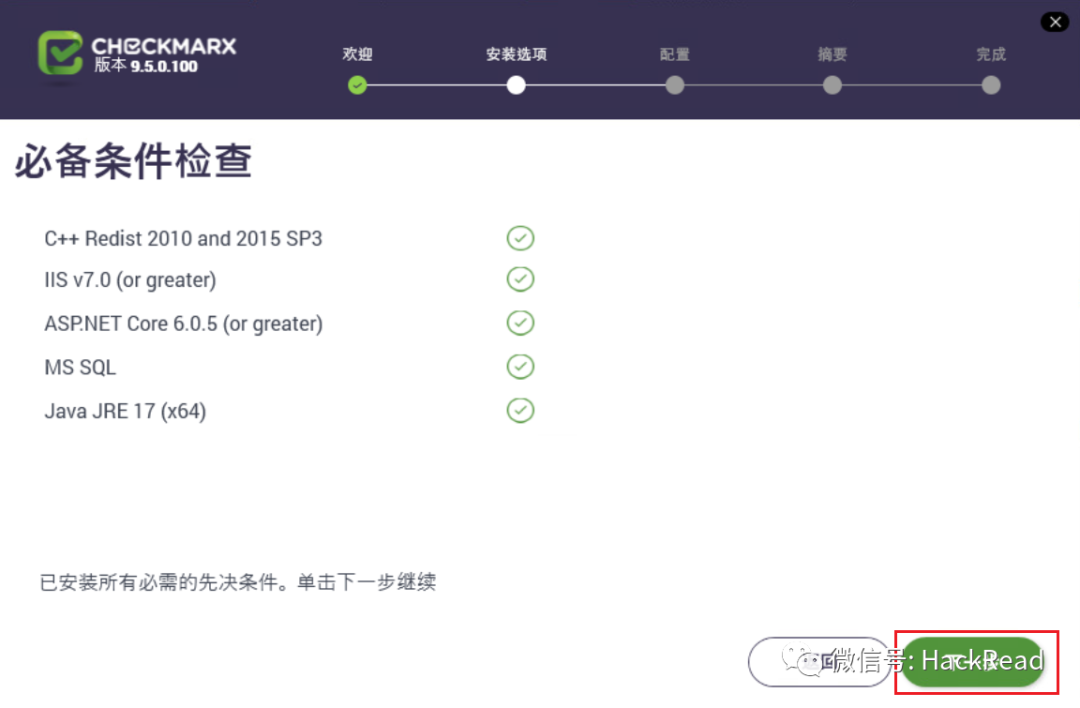 在安装 CheckMarx 中会检查运行环境,请参照上文环境要求节