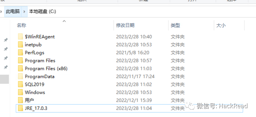 将 Java 文件夹中的 JRE_17.0.3.zip 解压后放置于 C 盘根目录即可,如图所示