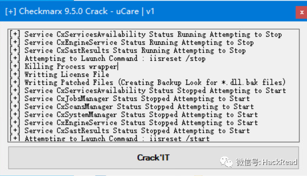 之后运行 CheckMarx95CR.exe,直接点击 Crack' IT 进行破解,如下图即为破解完成