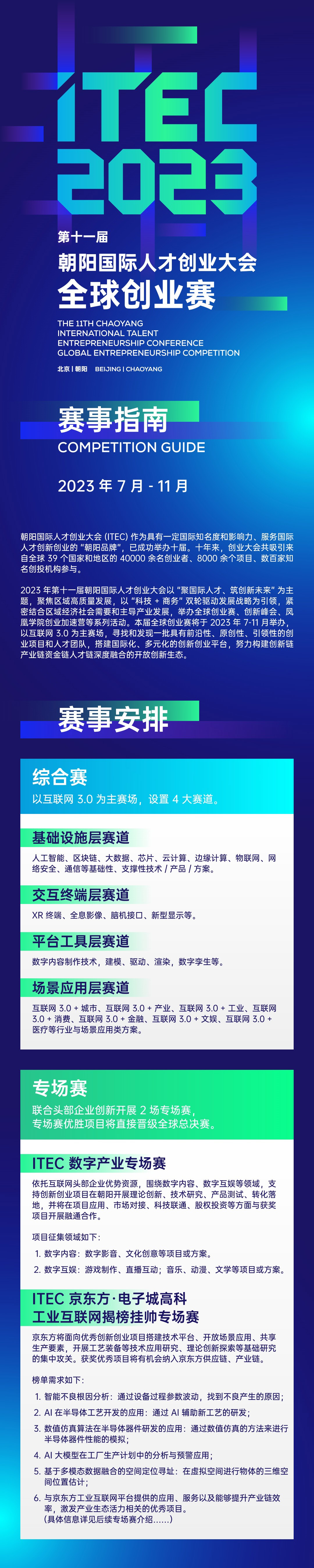 第十一届朝阳国际人才创业大会(ITEC2023)全球创业赛报名通道已经开启!