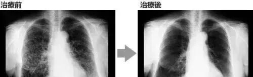 案例3:一名广泛期小细胞肺癌患者,在进行4个疗程化疗和4次高度活化NK细胞回输后,患者第一次进行治疗后的CT复查,结果显示,肿瘤缩小到了原来的1/8。而且距发病第六年的CT复查中,仍旧没有发现任何异常及复发的迹象。