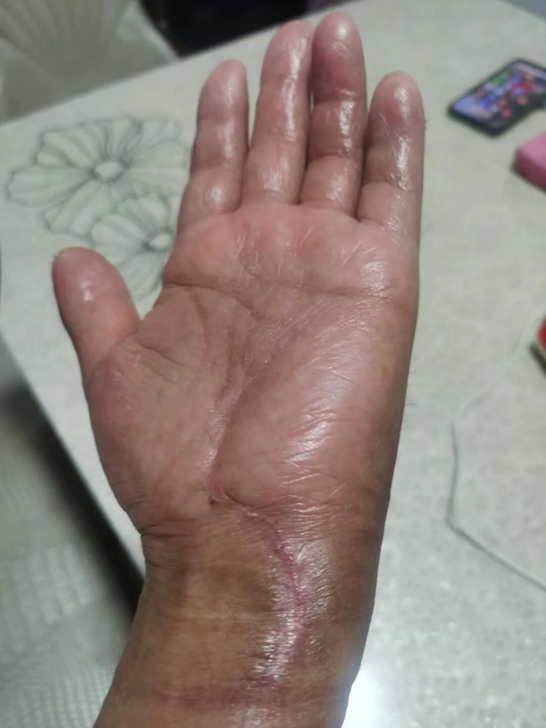 王健说,当时接诊叶阿公时他也大吃一惊,左手感染如此严重,如果不及时送来,真的可能面临截肢,甚至危及生命。叶阿公的手术难度也比较大,历时3小时,采取控制感染、保肢、恢复功能等。术中,他切开左手上肢,将感染的腐肉一一清理干净,并喷洒生长因子药物,加快皮肤愈合,这才保住了叶阿公的左手。